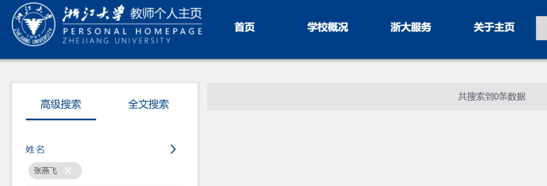 今天下午,我再次在浙大官网搜索“张燕飞”时,却找不到了。难道浙大对张燕飞有特殊保护?难道她真的就只凭外貌撑起了这一切?